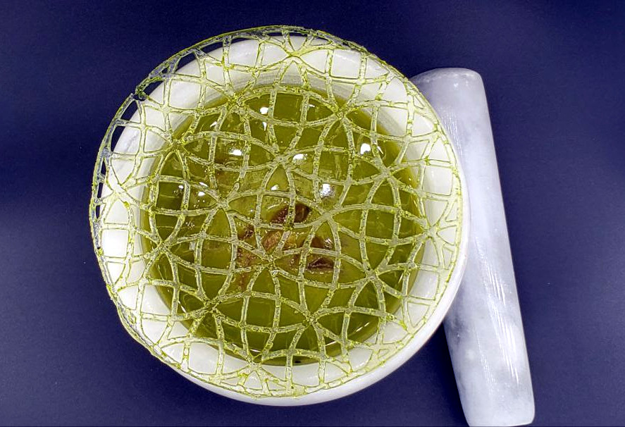 • Líquido, en una especie de gazpacho verde