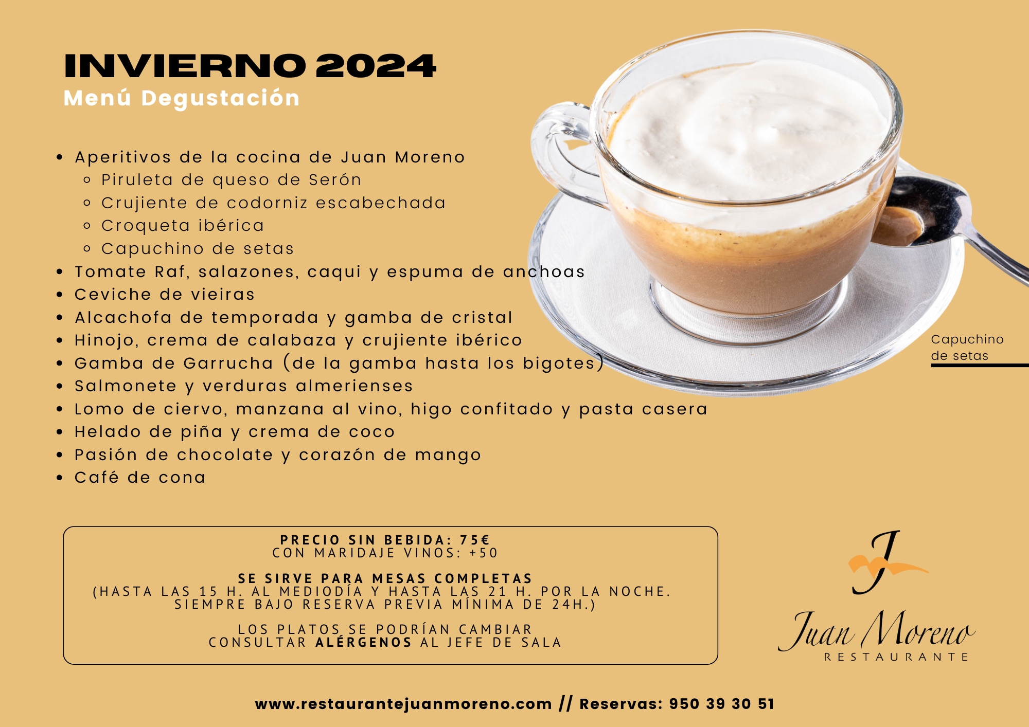 Este menú estará disponible en el restaurante hasta principios de primavera siempre bajo reserva previa. Se puede reservar llamando o escribiendo un whatsapp al teléfono: +34 950 39 30 51 o rellenando este formulario indicando el deseo de probar el menú degustación.